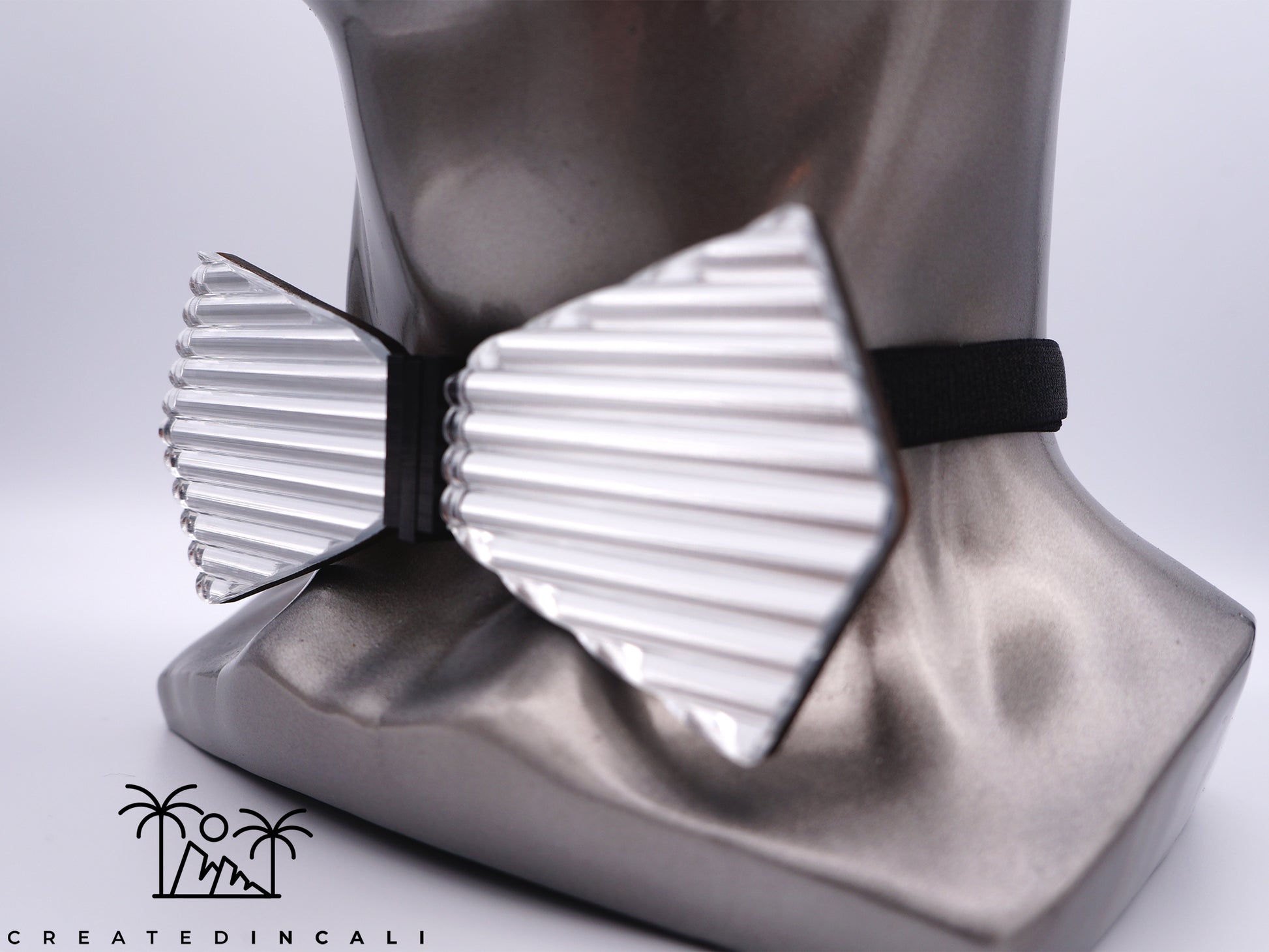 Unlike the classic rounded version of this design, the angled edges add a modern flair to this bowtie.