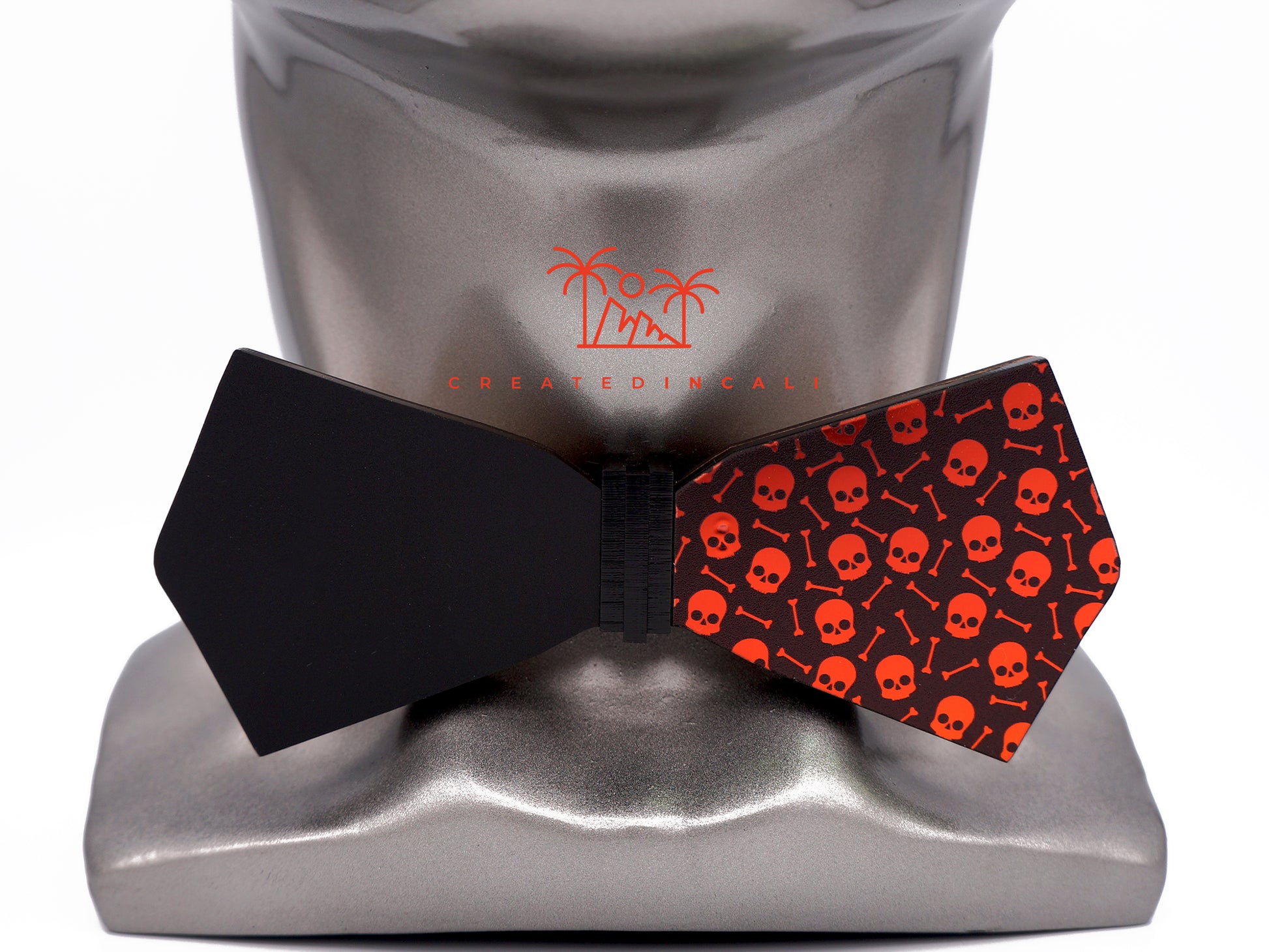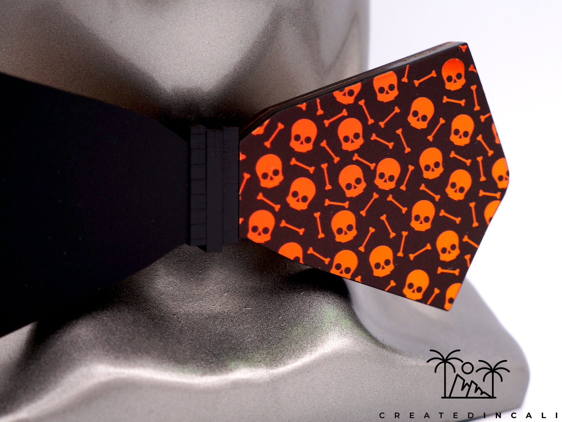 Crafted with precision, this bowtie showcases a wooden base elegantly embracing a color-changing Skull pattern with pointed edges, a modern twist on timeless charm.