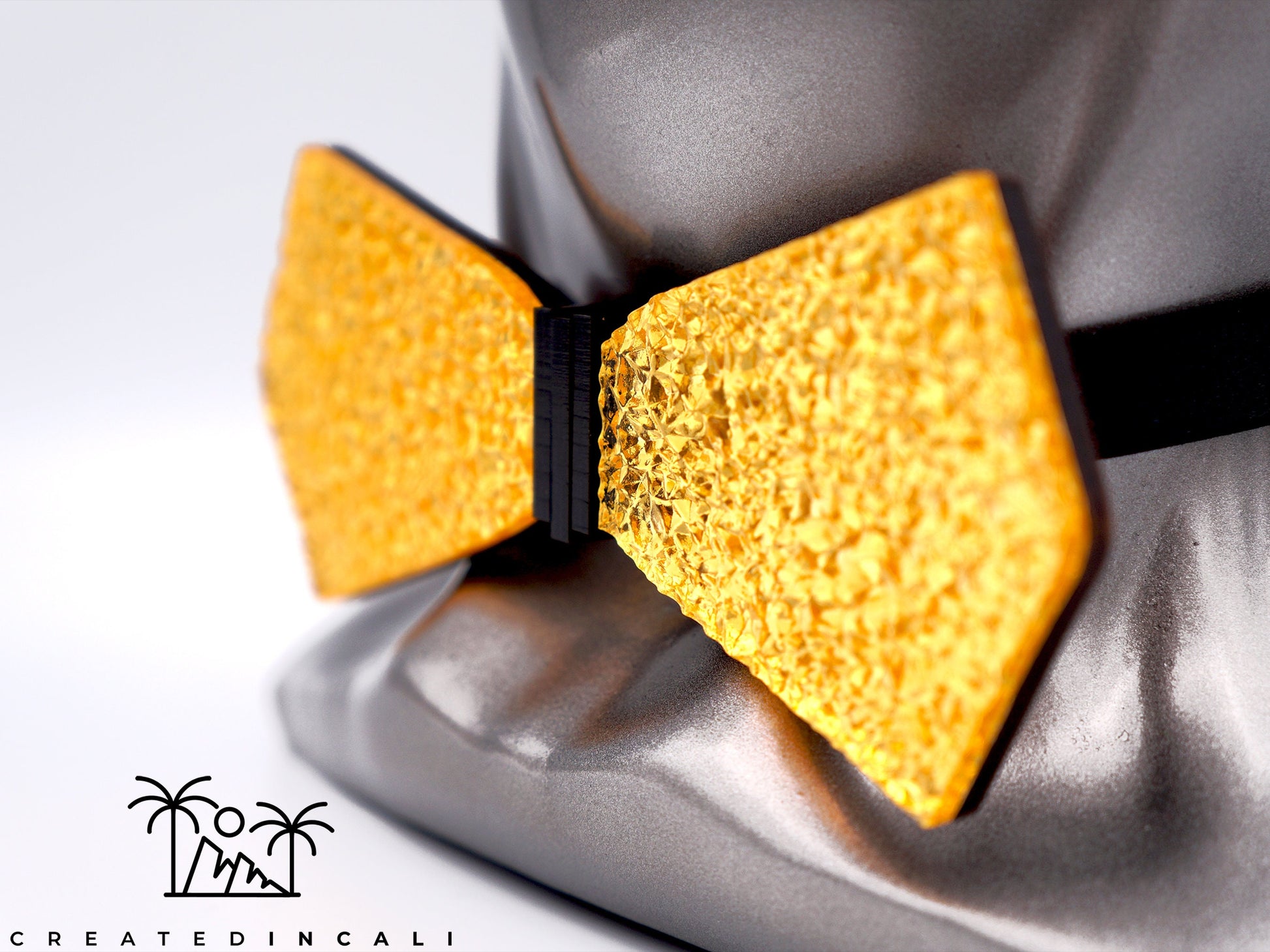 With a captivating Golden textured design adding an artistic flair and a wooden base seamlessly bringing in a touch of nature, this bowtie is a true masterpiece.