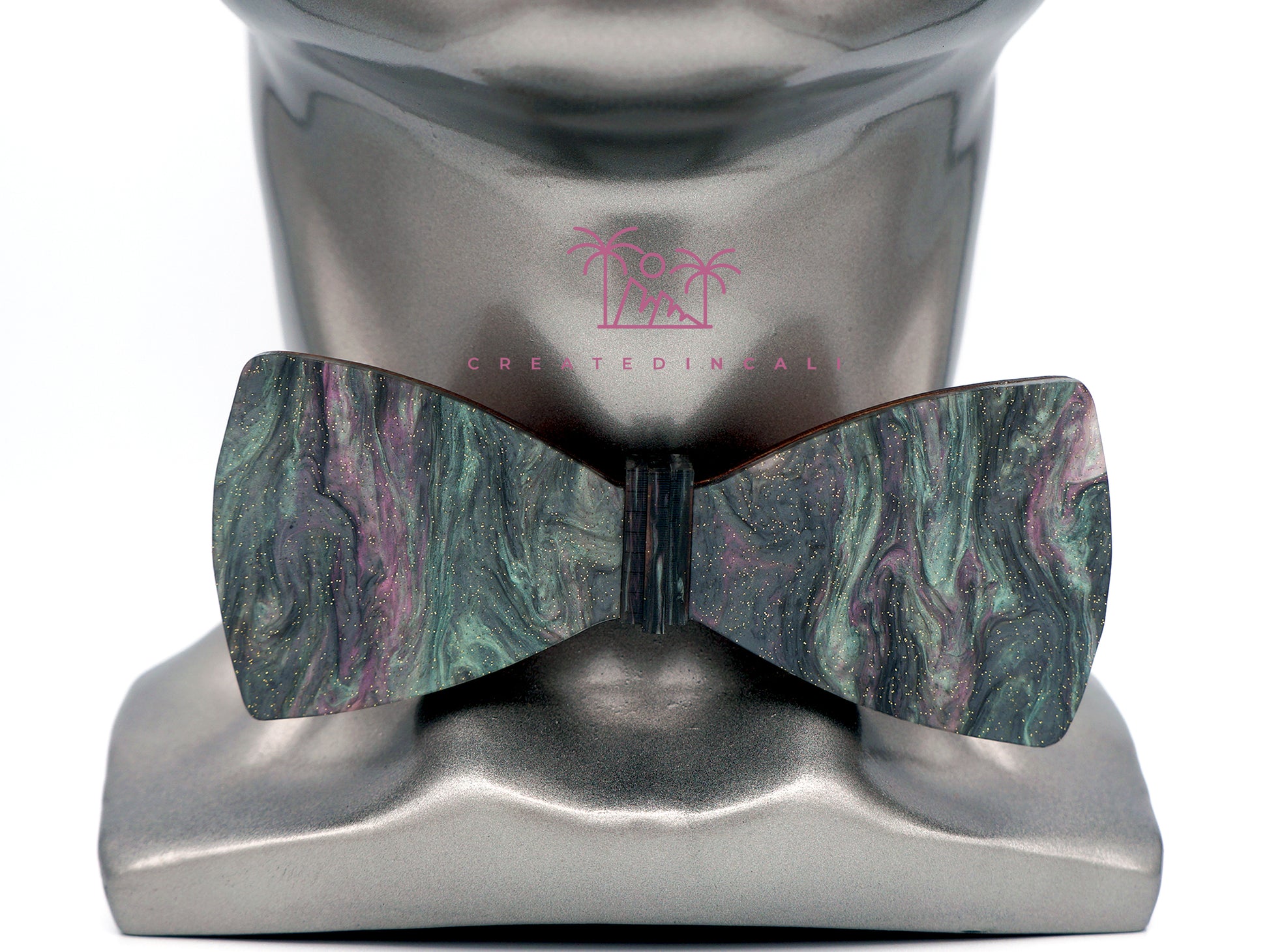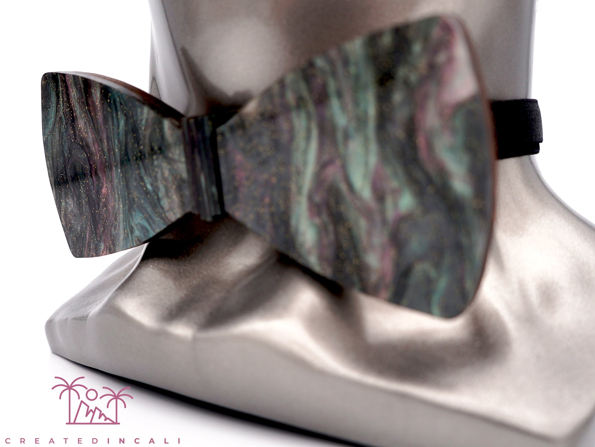 The bowtie features a captivating mix of colors, creating a swirling, nebula-like design that's truly out of this world. Each bowtie is a unique piece of art, ensuring you stand out in any crowd.