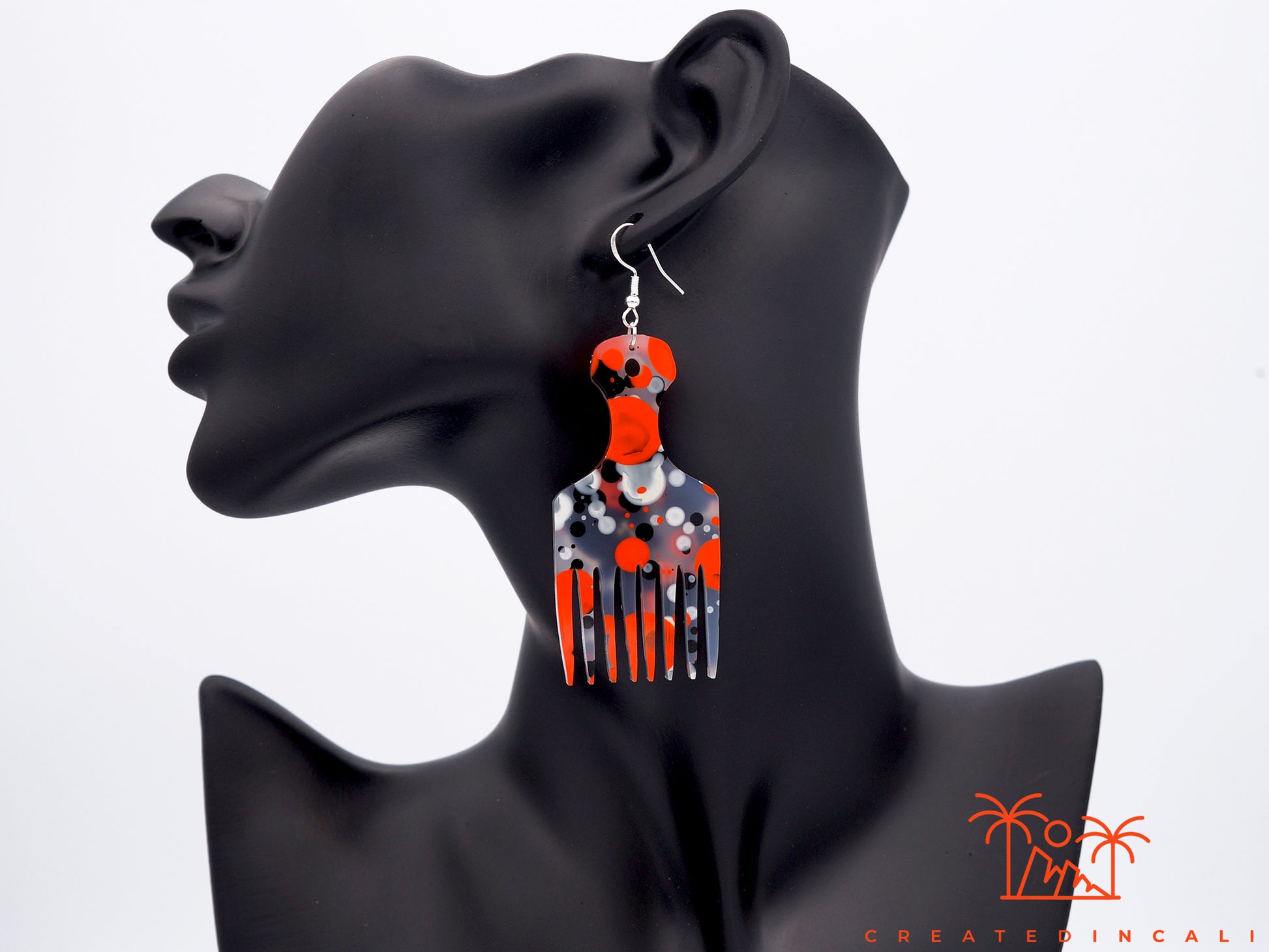 Introducing our stylish and unique hair pick-shaped earrings in a Koi Ink style!