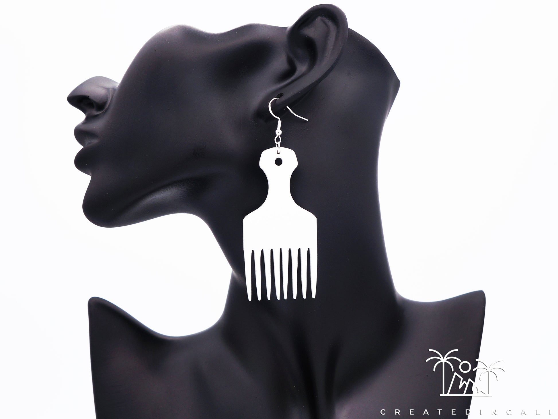 Introducing our stylish and unique hair pick-shaped earrings in White!