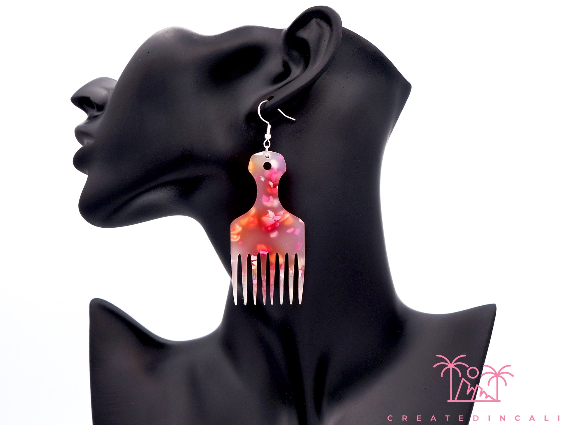 Add some unique and vibrant style to your wardrobe with these hair pick-shaped earrings!