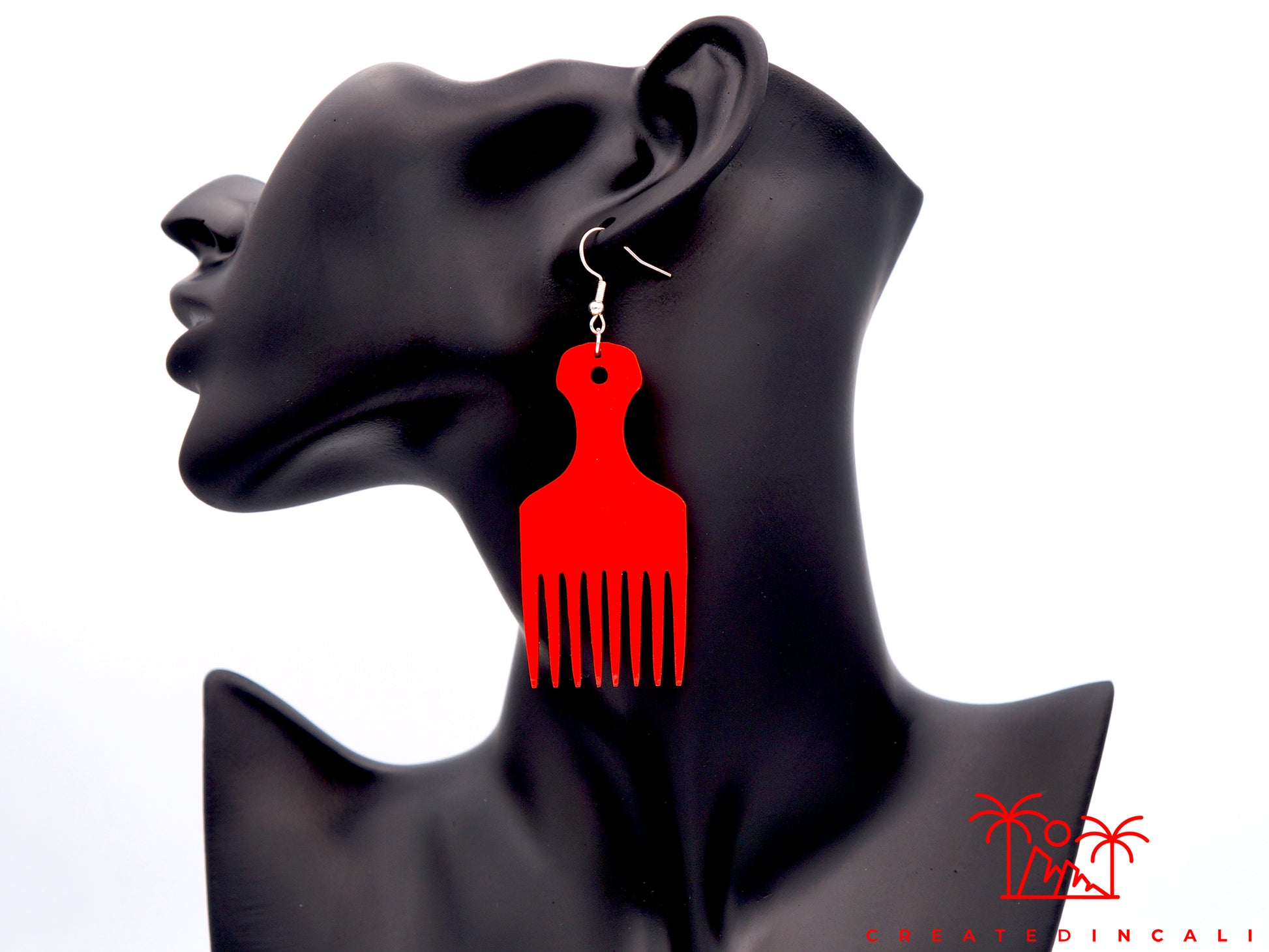 Introducing our stylish and unique hair pick-shaped earrings in Red!