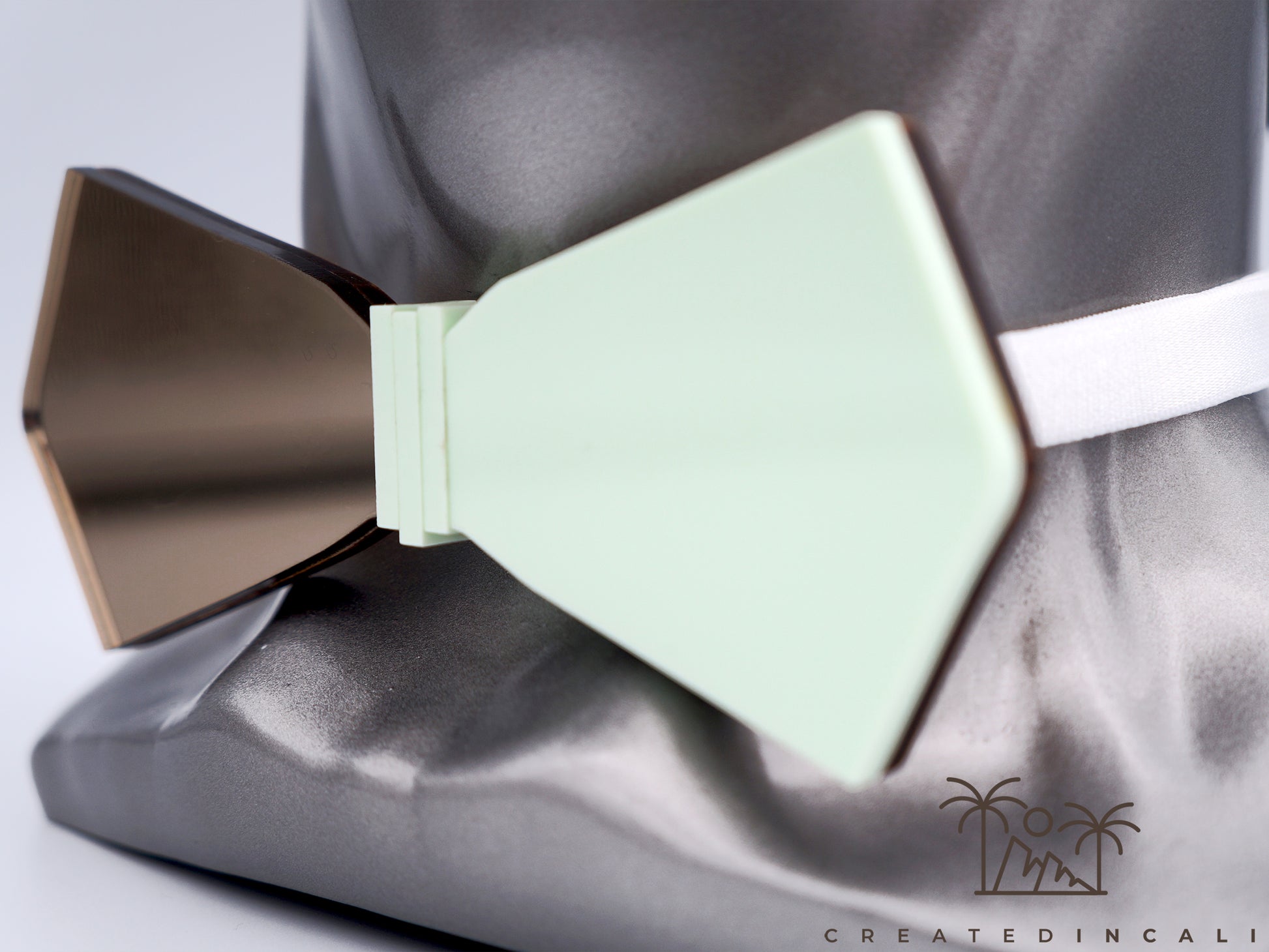 The simple pattern features a Bronze mirror finish on one half and a sleek Pistachio color on the other, creating a beautiful contrast that catches the eye.