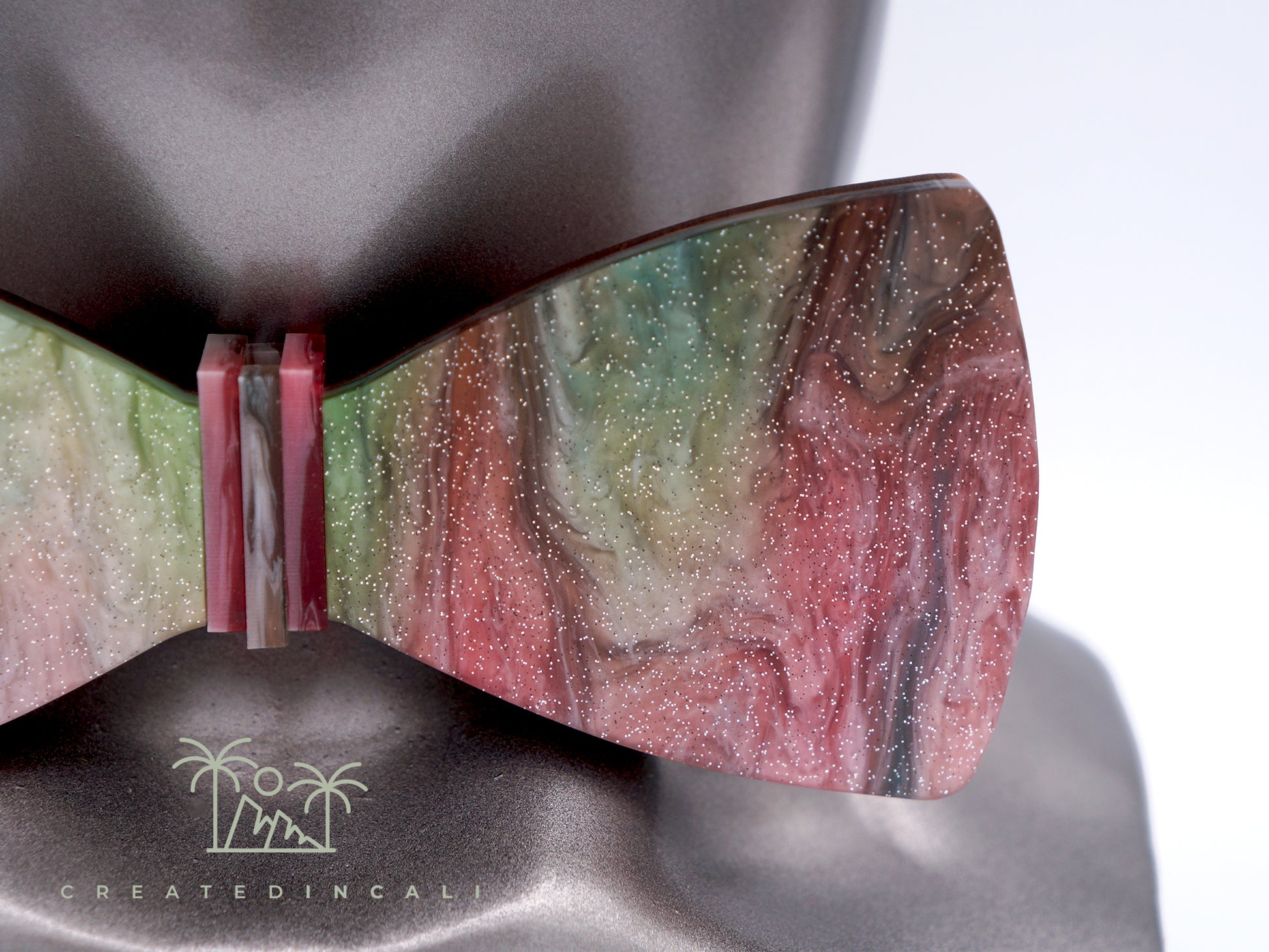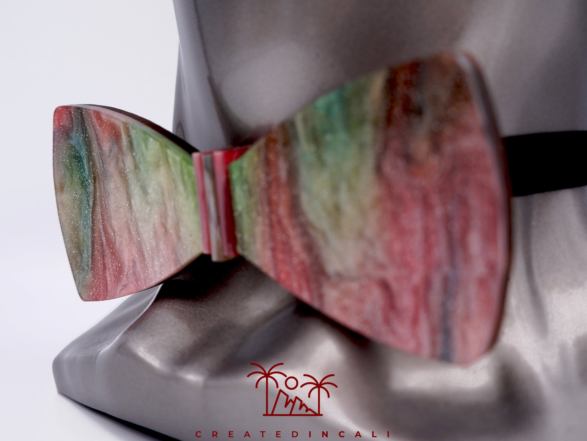 The bowtie features a captivating mix of colors, creating a swirling, nebula-like design that's truly out of this world. Each bowtie is a unique piece of art, ensuring you stand out in any crowd.