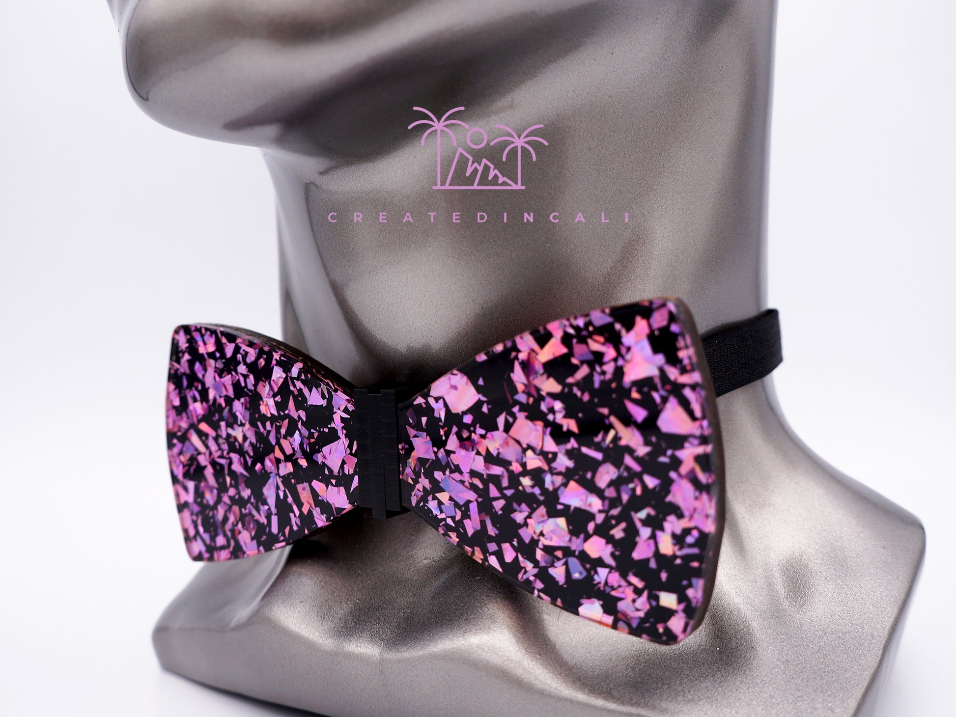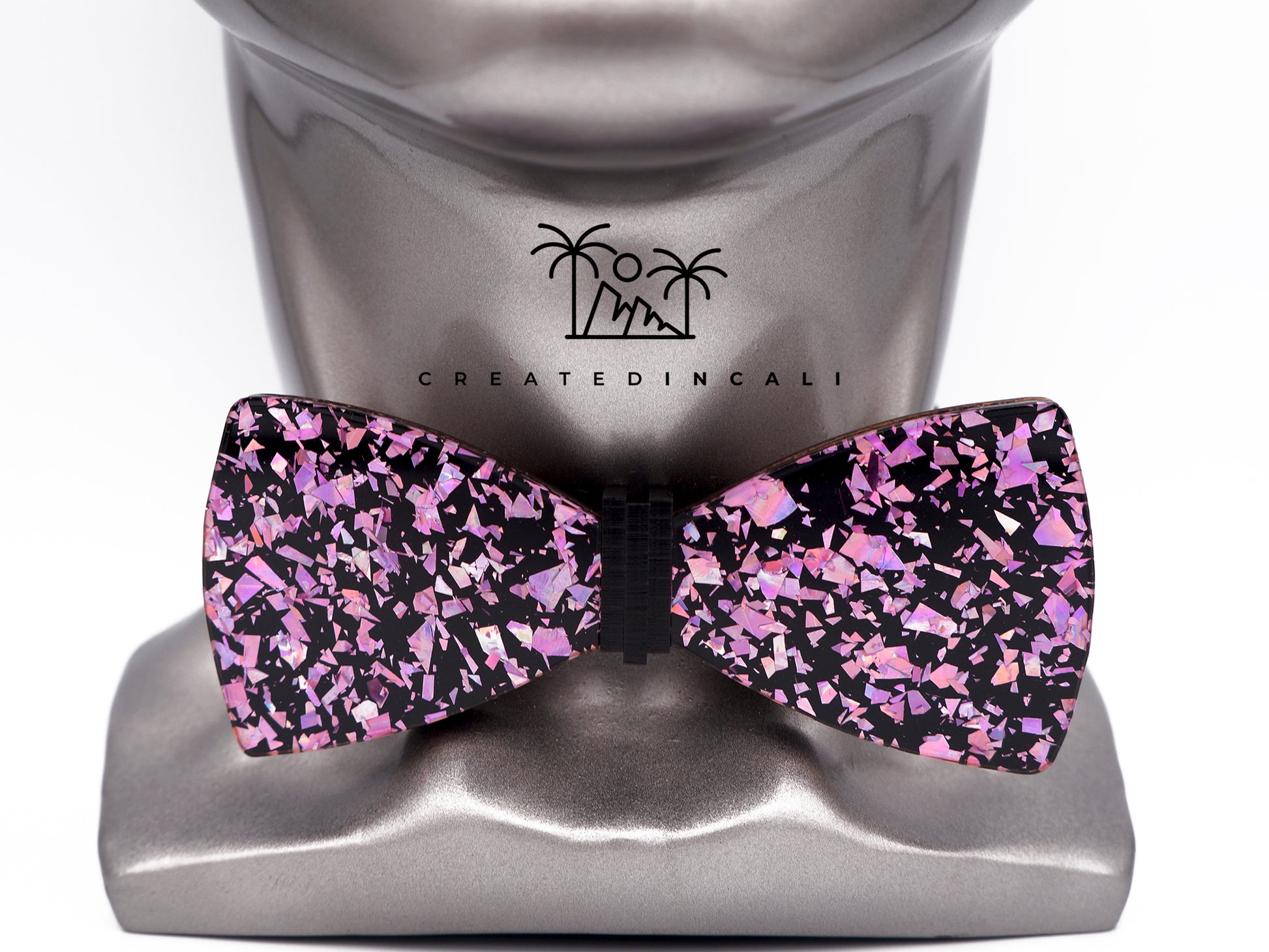 Handcrafted with meticulous precision, this bowtie boasts a sleek black surface adorned with radiant rose colored flakes, ensuring you stand out in any crowd.