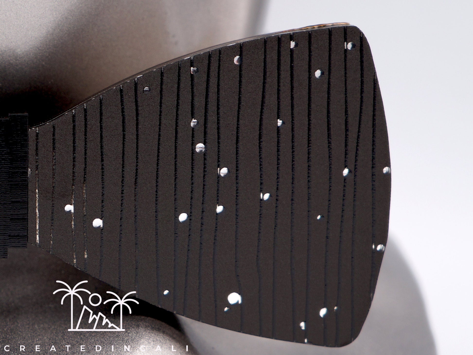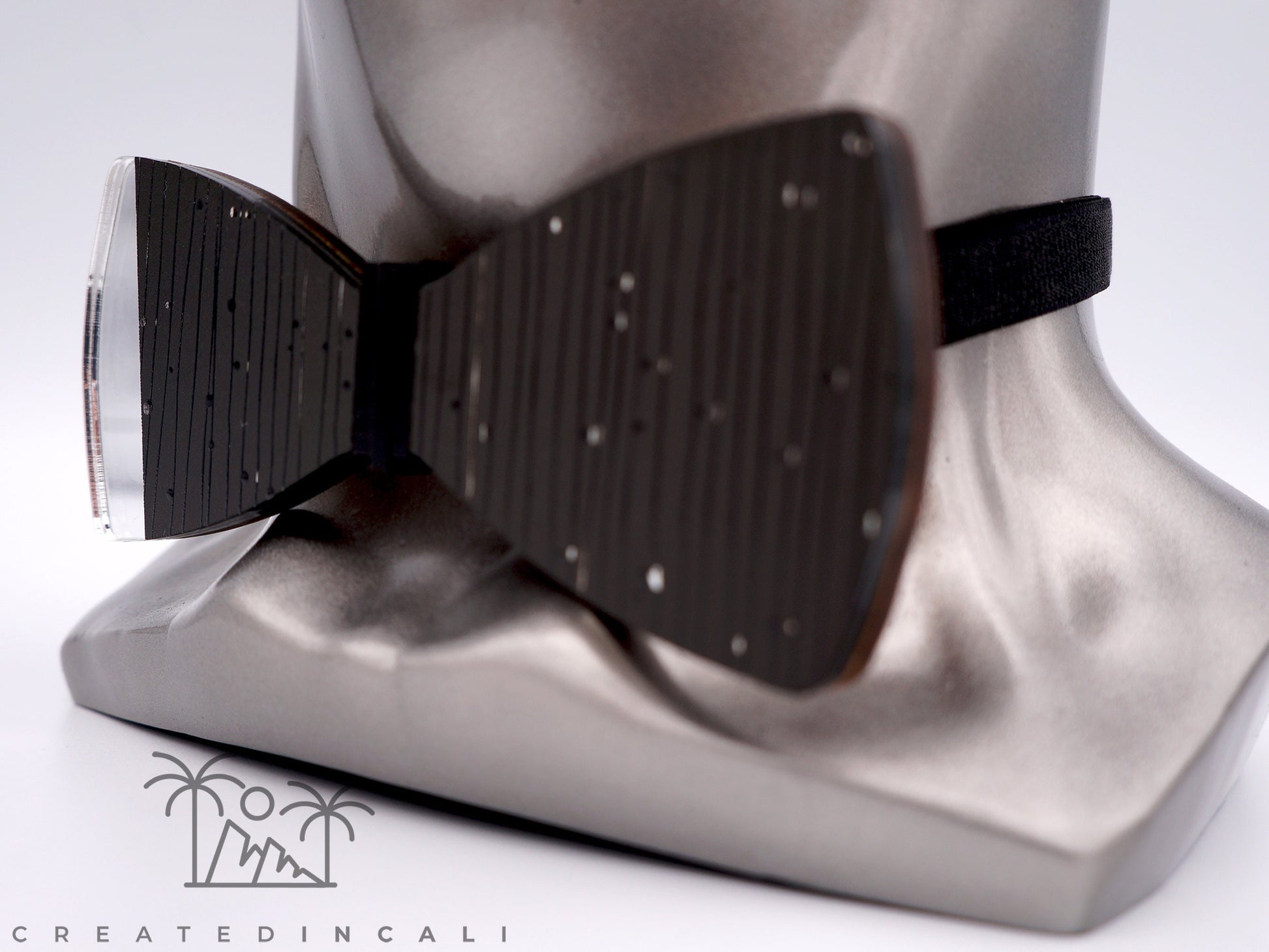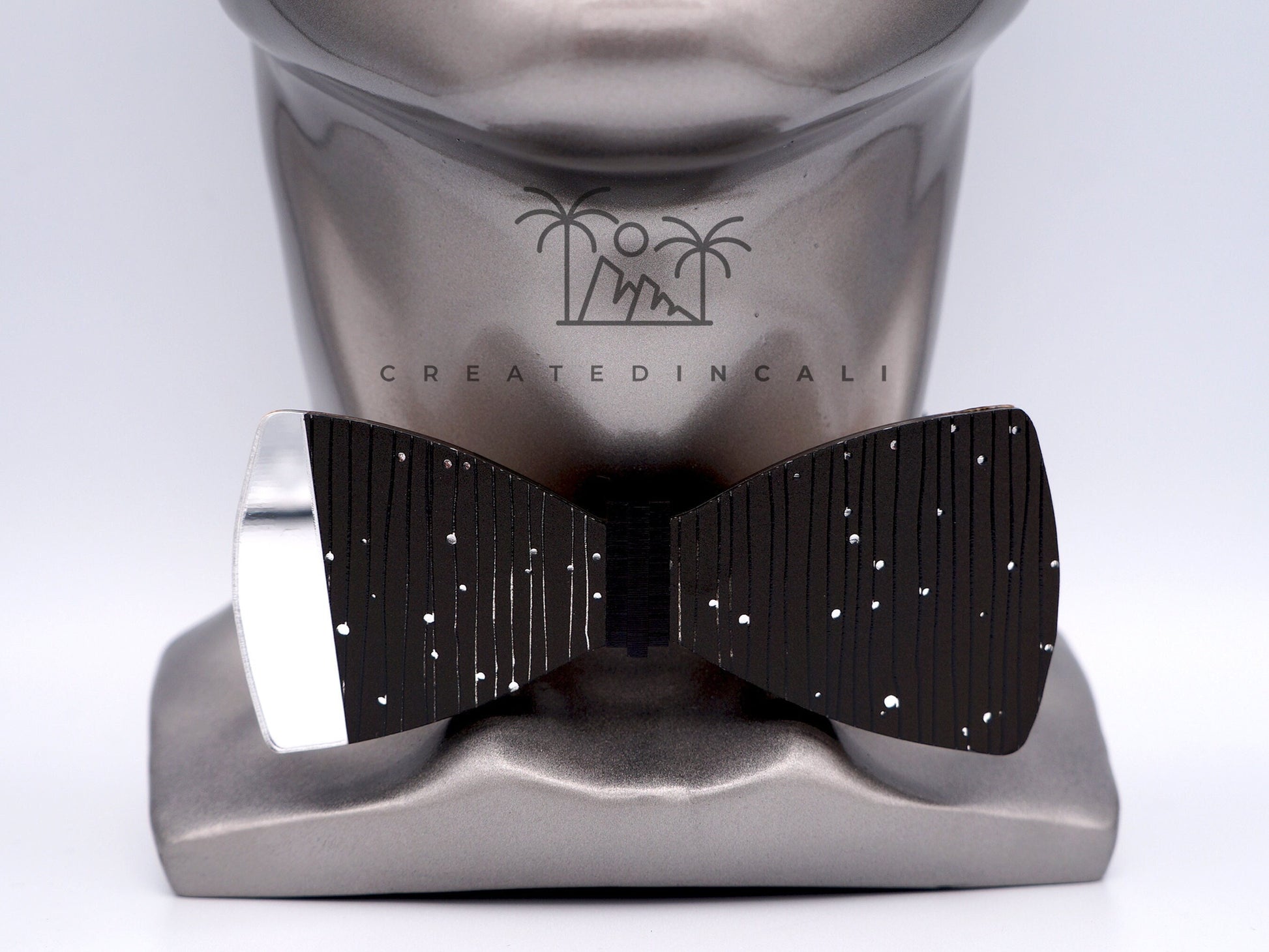 Elevate your look with our unique handcrafted bowtie, featuring a sleek raindrop design in matte black and silver.