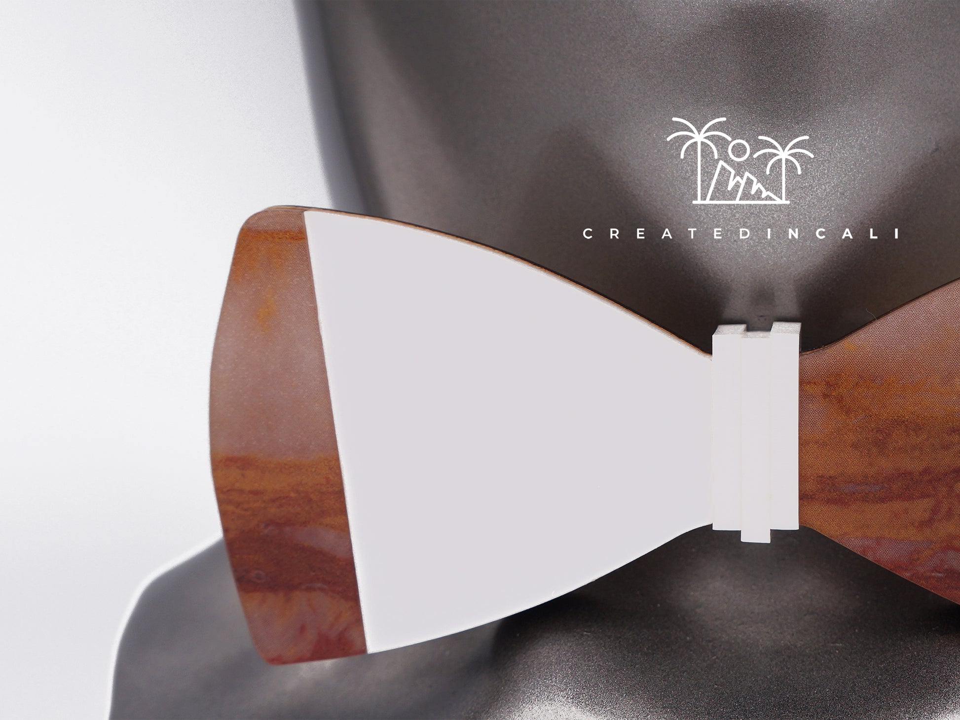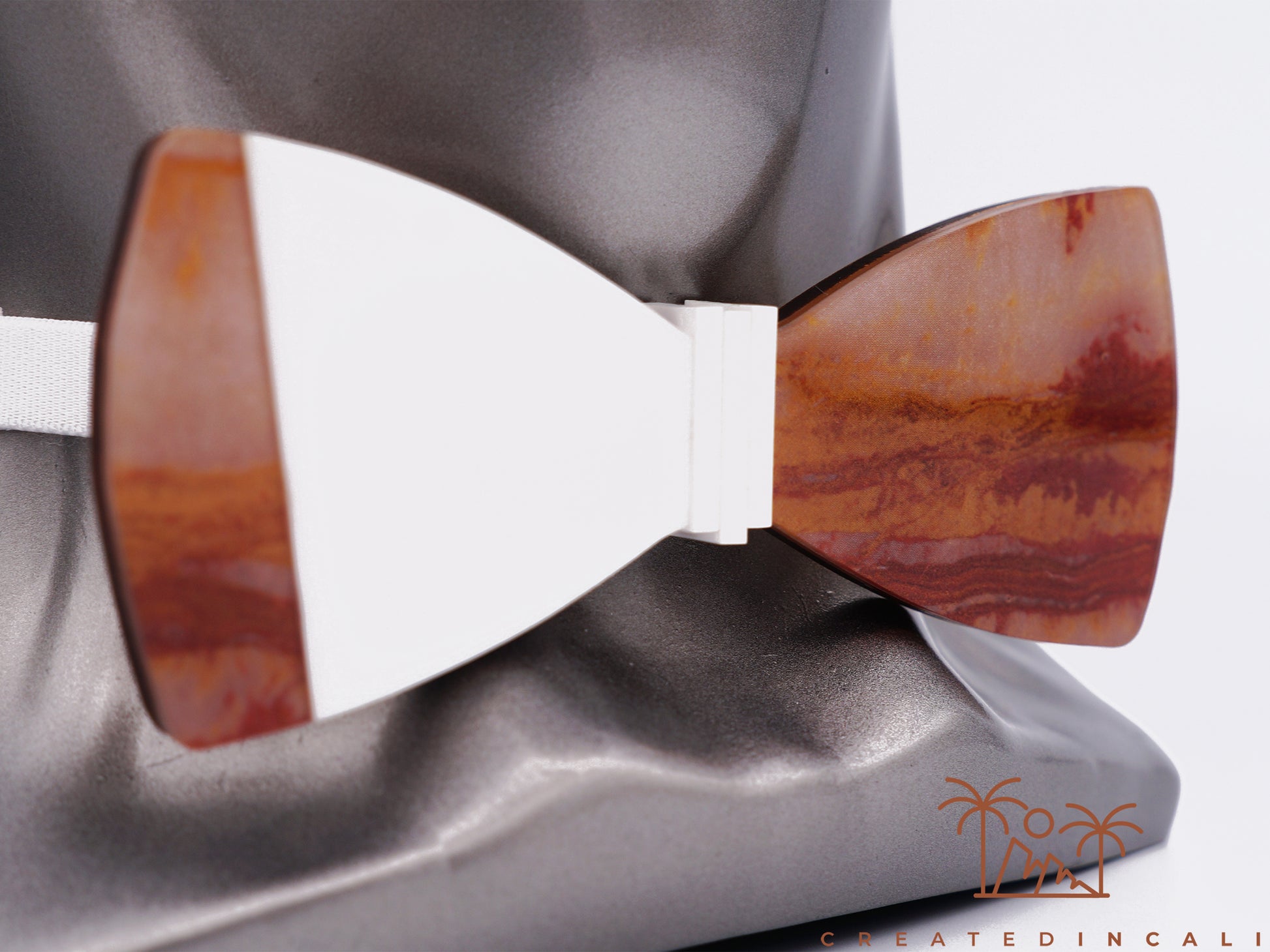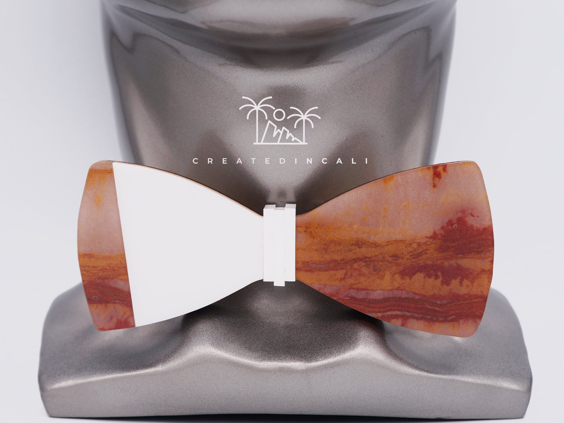 Crafted with precision, this bowtie boasts a wooden base adorned with a stunning Breccia Pernice marble pattern.